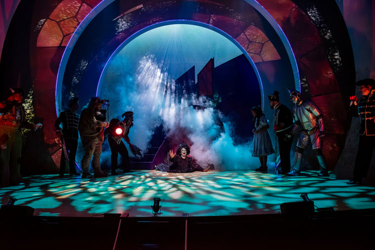 Stained Glass Walls - I created large pieces of hand drawn and animated stained glass art, which framed the space of the Witch's Castle, the Wizard's Chambers, and the City of Oz.